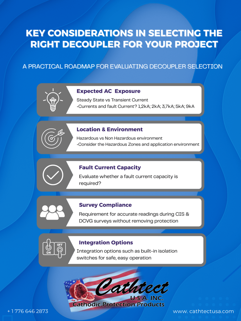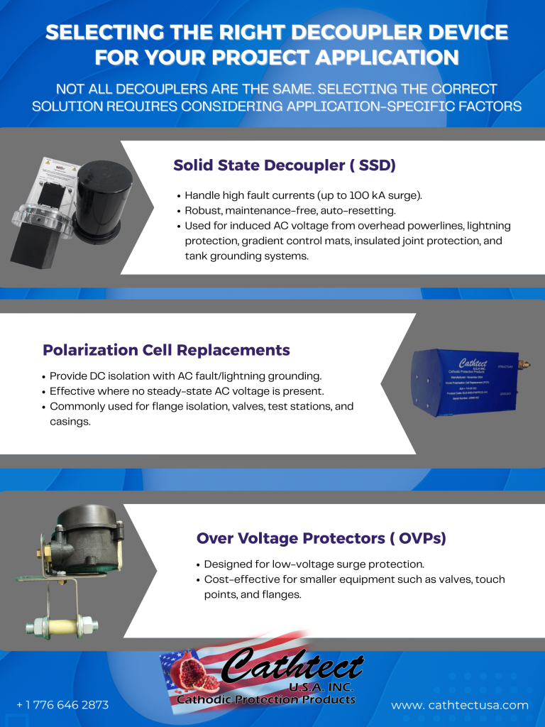 With over 35 years of global CP experience and innovations in solid-state decoupling technology, Cathtect USA provides tailored AC mitigation solutions for pipelines, storage facilities, utility crossings, and industrial systems.